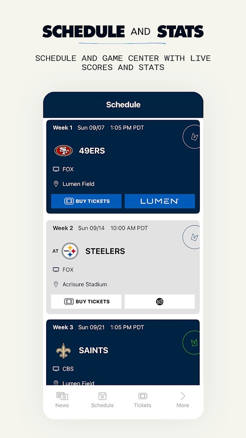 Мобильная продажа билетов: используйте приложение Seahawks для просмотра, передачи и продажи билетов Seahawks.