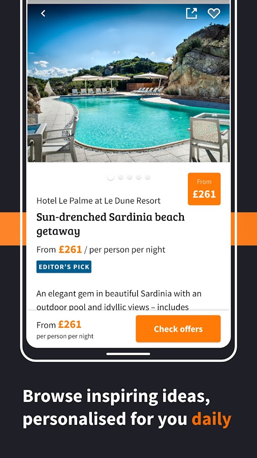 С нашим приложением стильные путешествия всегда у вас под рукой — теперь вы можете просматривать, добавлять и сохранять интересные предложения даже в автономном режиме. Независимо от того, знаете ли вы, куда вы хотите пойти, или хотите вдохновения, есть сотни идей на выбор, подобранных с учетом ваших личных предпочтений.