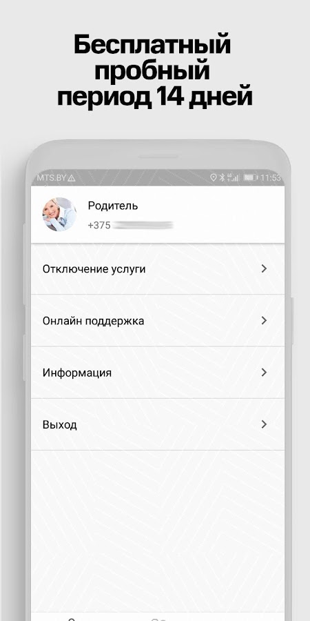 Приложение доступно только абонентам МТС и работает при условии подключения услуги «Семья здесь». Стоимость услуги — 4 руб./мес. с НДС. Пробный бесплатный период 14 дней предоставляется каждому пользователю, подключившего услугу впервые. Подробное описание услуги доступно по ссылке https://family.mts.by/