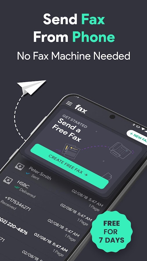 Отправляйте факсы бесплатно с нашей 7-дневной бесплатной пробной версией, чтобы отправлять и получать факсы с вашего телефона Android и оценить бесплатную отправку факсов, прежде чем выбирать тарифный план.