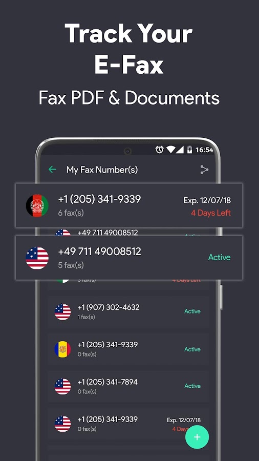 Получите выделенный номер факса для всех входящих факсов из таких стран, как США (местный или бесплатный звонок), Канада, Великобритания (местный или бесплатный звонок), Австралия, Германия, Италия, Испания, Израиль и Турция и др. Получайте мгновенные уведомления о получении факса и сохраняйте их локально или в облачном хранилище. Управляйте всеми полученными факсами легко через приложение «Факс». Вы также можете получать факсы с iPhone через приложение для факсов на Android.