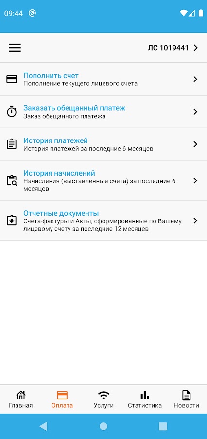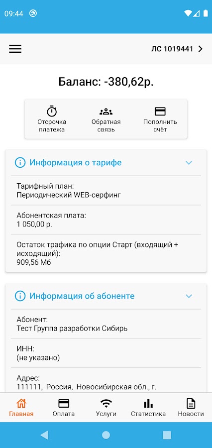 Просматривайте баланс, остаток трафика, запрашивайте отсрочку платежа, пополняйте баланс лицевого счета по любому из ваших лицевых счетов.