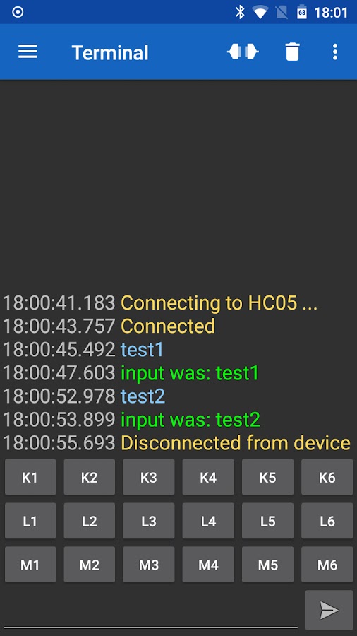 «Serial Bluetooth Terminal» — это линейно-ориентированное приложение терминала / консоли для микроконтроллеров, arduinos и других устройств с последовательным интерфейсом / UART, подключенным с помощью преобразователя bluetooth в serial к вашему устройству Android.