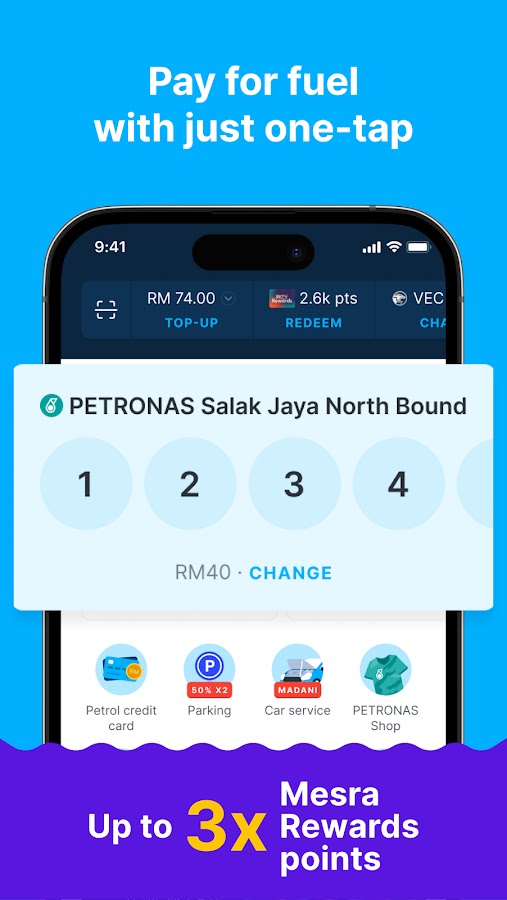 С Setel каждый литр становится выгоднее: пользователи могут получать до 3x баллов Mesra Rewards за каждую транзакцию. Setel находится под надзором Bank Negara Malaysia, что гарантирует ваше спокойствие.