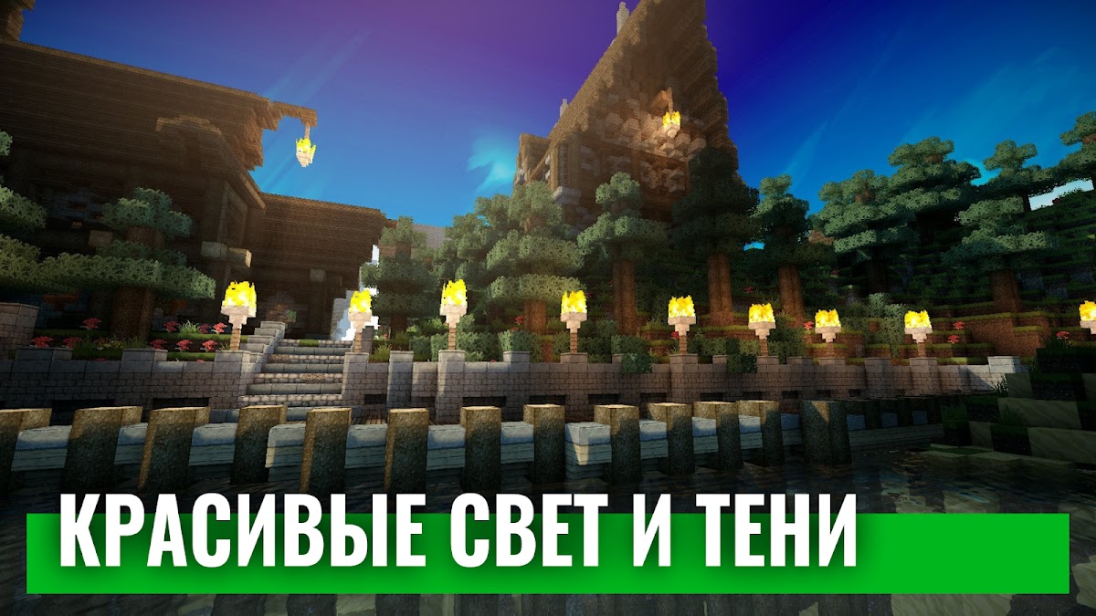 Многим, кто играет в майнкрафт не нравится обычные текстуры и шейдеры. Лучшие шейдеры для Майнкрафт доступны для скачивания в нашем приложении бесплатно. Разукрасьте обычный майнкрафт, добавь красок! Реалистичные шейдеры для Minecraft PE очень крутые и при этом не влияют на производительность. Теперь вы сможете играть играть в шейдеры с реалистичной графикой на любом устройстве. Даже, если оно слабое. Текстуры для майнкрафта приближены к реальной жизни. Позовите друзей и будете играть вместе с шейдеры для майнкрафт PE. Новые шейдеры мод для майнкрафт pocket edition (mcpe) улучшат ваш игровой процесс в Minecraft с яркими цветами, колышущимися растениями, красивым небом и плавными реалистичными тенями. Улучшенная графика распространяется на все! Даже Зомби будут с шейдеры для майнкрафт. HD Shader улучшат небо, воду и остальные текстуры Minecraft. Я советую вам скорее скачать шейдеры как в реальной жизни и попробовать его!