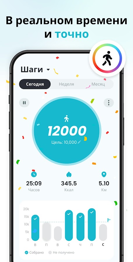 Шагомер — Счетчик шагов, приватный и точный трекер шагов для отслеживания ежедневных шагов, пройденного расстояния, времени и сожженных калорий.