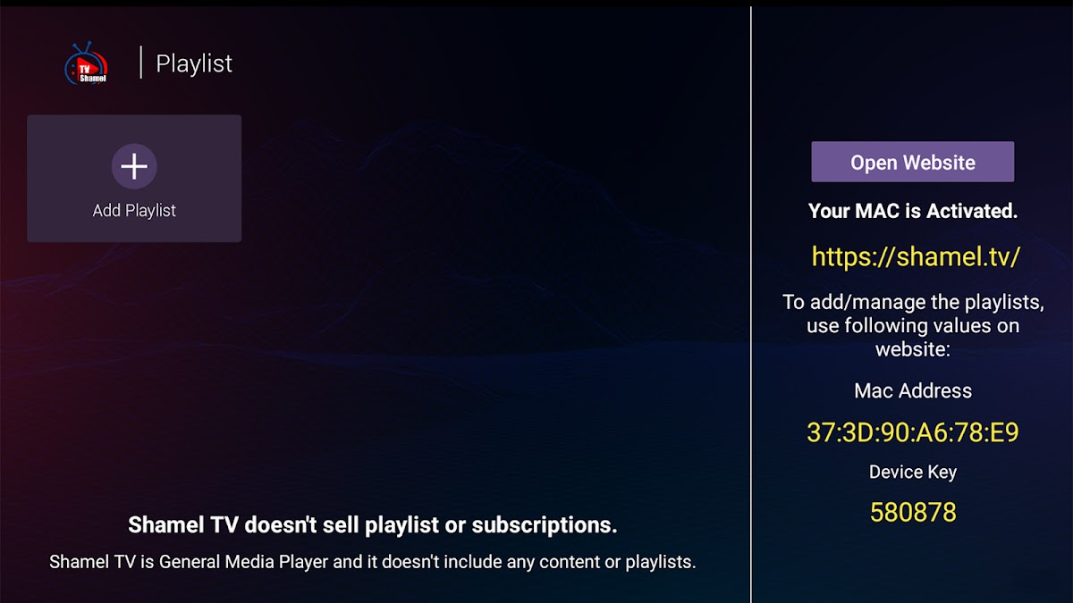 — Shamel.tv — это всего лишь приложение для воспроизведения контента, не включающее в себя никаких медиафайлов или контента.