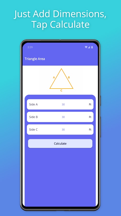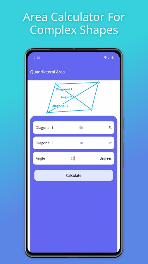 С помощью этого приложения рассчитайте площадь более 15 различных фигур. Так что теперь вам не нужно запоминать формулу для каждой формы. Получайте точный ответ каждый раз, когда вы используете это приложение, выбирая британские или метрические единицы и экономя время.