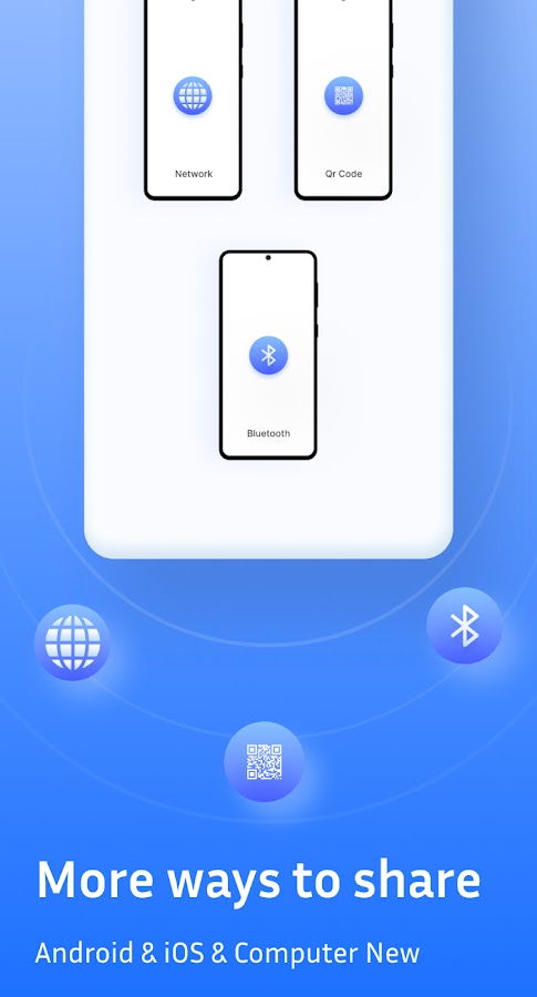 ✔️ Сканирование и отправка QR-кода: передавайте самоуничтожающиеся данные на любое устройство и с него путем сканирования QR-кодов. Беспроводная передача файлов с помощью QR-кода. Делитесь файлами, фотографиями, видео, PDF-файлами, документами Google с помощью QR-кода.