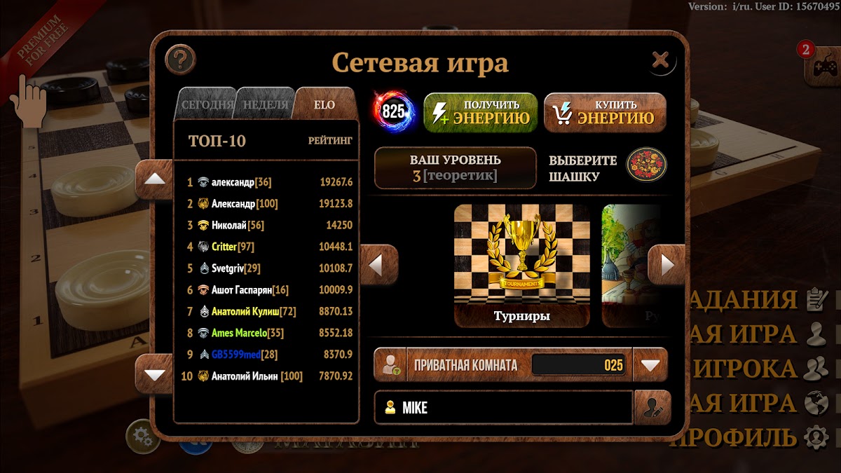 Такая тонкая настройка делалась под бесплатную онлайн игру, в которой вы можете сразиться с игроками со всего мира. В этом режиме вы будете получать новые уровни и звания, что позволит разблокировать шашки с дополнительный раскраской, а также даст возможность поучаствовать в турнирах с хорошими наградами. В онлайн игре можно сыграть как с другом, так и с незнакомым соперником. В случае победы вы попадаете в ежедневный, еженедельный и общий рейтинг, где можете сравнить свои достижения с другими участниками.