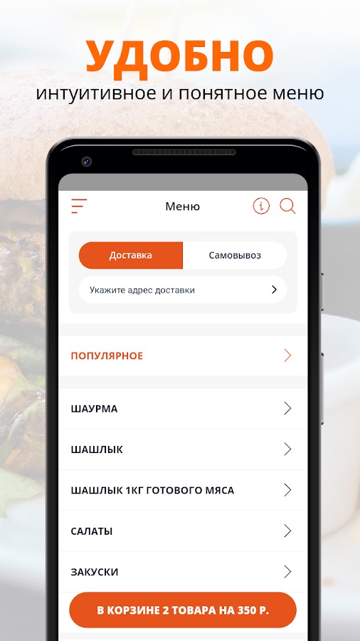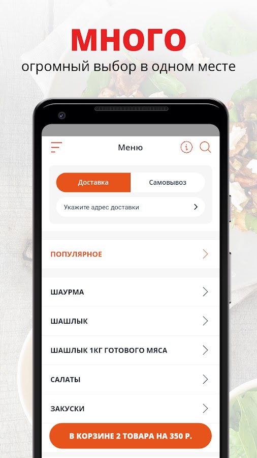 Скачивайте наше приложение, выбирайте любимые блюда из нашего меню и заказывайте вкусную еду всего в несколько кликов!