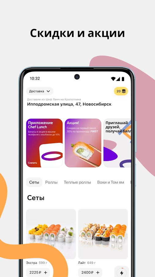 Шеф Ланч — приложение для заказа премиальных суши и роллов в Новосибирске.