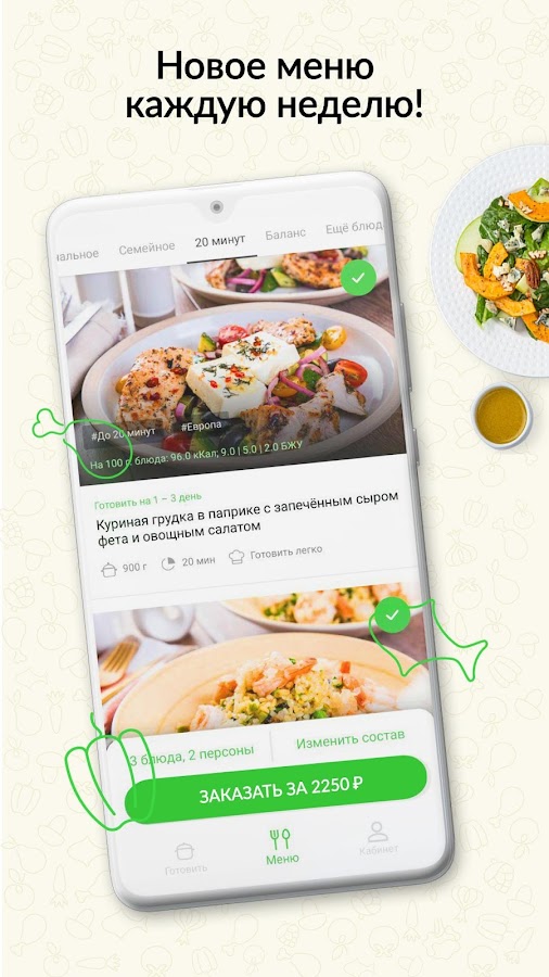 Шефмаркет — сервис доставки продуктов с рецептами на неделю по подписке. Мы создаем рецепты с известными шеф-поварами, закупаем свежие продукты напрямую у производителей, упаковываем и доставляем заказы клиентам домой. На готовку вы потратите около 30 минут, а блюда гарантированно понравятся всей семье! Меню обновляется каждую неделю.