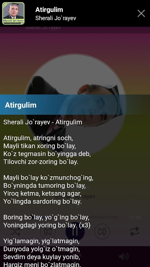 Информация о Sherali Jo`rayev qo’shiqlari