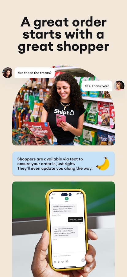 Доставка из ваших любимых местных продуктовых магазинов и магазинов товаров повседневного спроса всего в нескольких касаниях. Скачайте приложение Shipt, начните оформление заказа, и мы свяжем вас с опытным покупателем. Для получения дополнительной информации посетите shipt.com