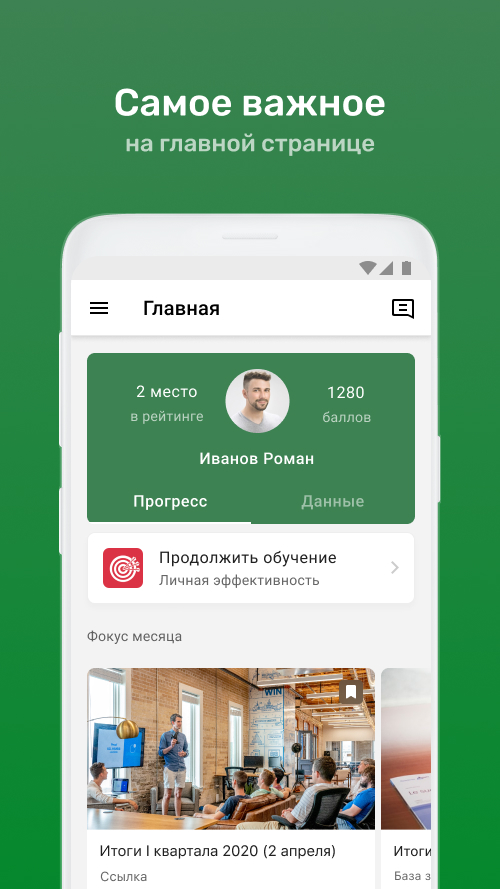 ⁃ Вы руководитель? Публикуйте и обсуждайте новости команды прямо из приложения, выдавайте награды и проверяйте прогресс обучения