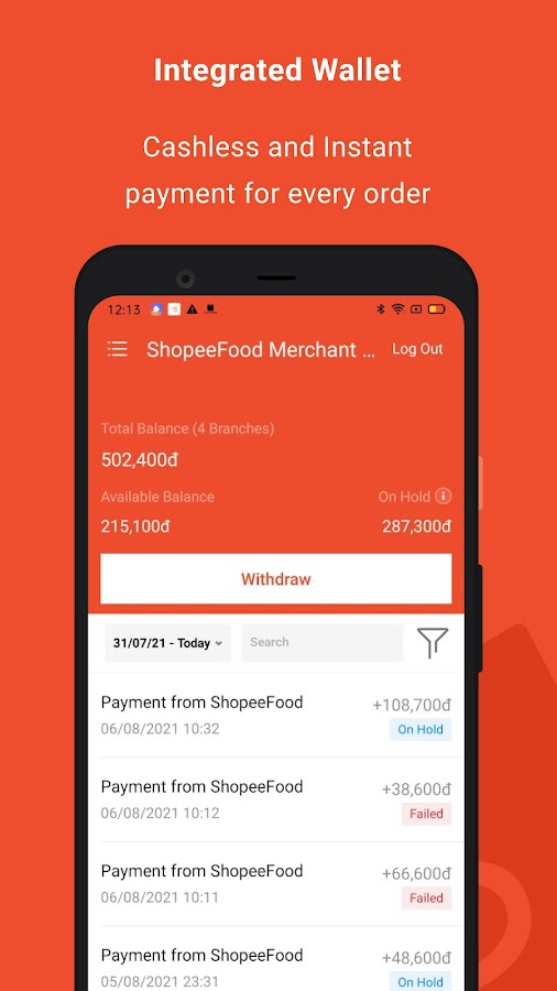 — Управляйте кошельком продавца ShopeeFood: ускоряйте оплату, проверяйте, отслеживайте и согласовывайте транзакции в любое время легко, быстро и безопасно.