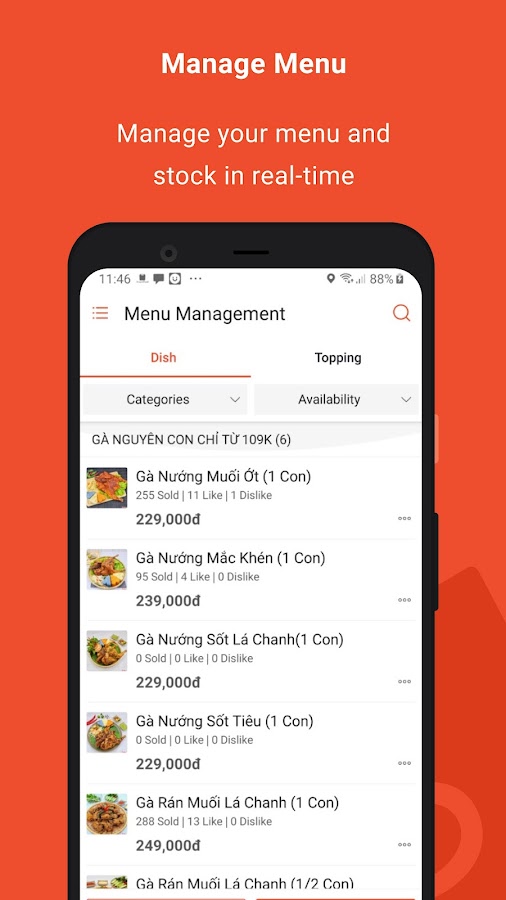 — Управление меню: создавайте меню, вручную обновляя названия товаров, цены товаров, изображения товаров, статус доступных/временно отсутствующих товаров в меню.
