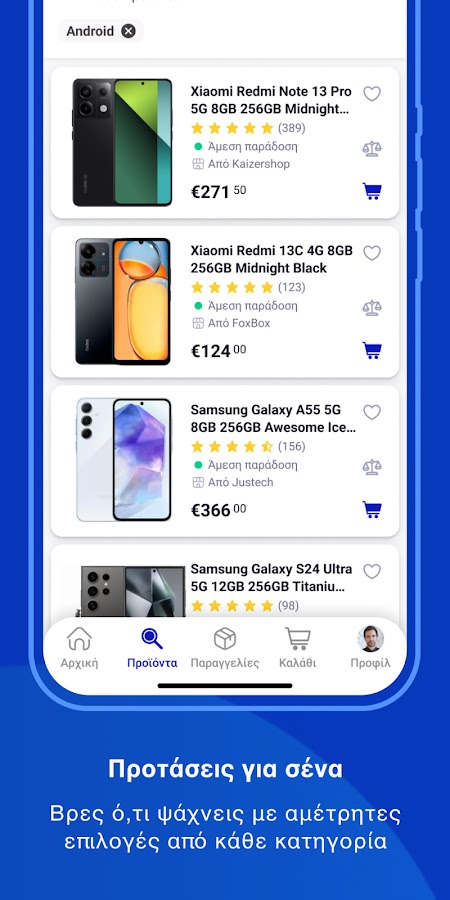 Приложение SHOPFLIX.GR развязывает вам руки, предлагая более 10 миллионов товаров, включая передовые технологии, гаджеты, товары для дома, для детей, домашних животных, книги, косметику, даже товары для игр, спорта и хобби, а также B2B. . Все, что вам нужно сделать, это загрузить приложение и начать делать покупки.