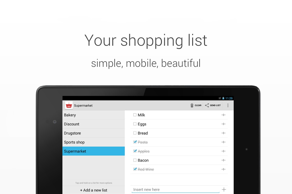 «Список покупок» — это самый простой способ организовать ваши списки покупок. Это минималистичное, интуитивное и легкое в использование приложение сохраняет ваши списки покупок, не беспокоя вас сложными функциям. Разработка приложения «Список покупок» поддерживается рекламой — ее удаление стоит меньше чашки кофе :)