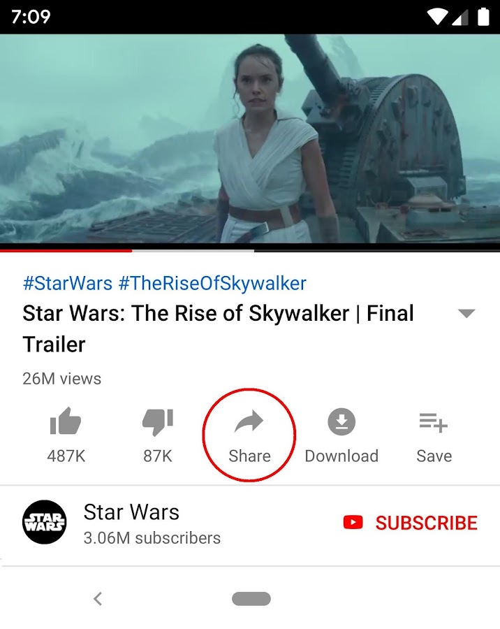 2. Коснитесь «Поделиться» на видео.