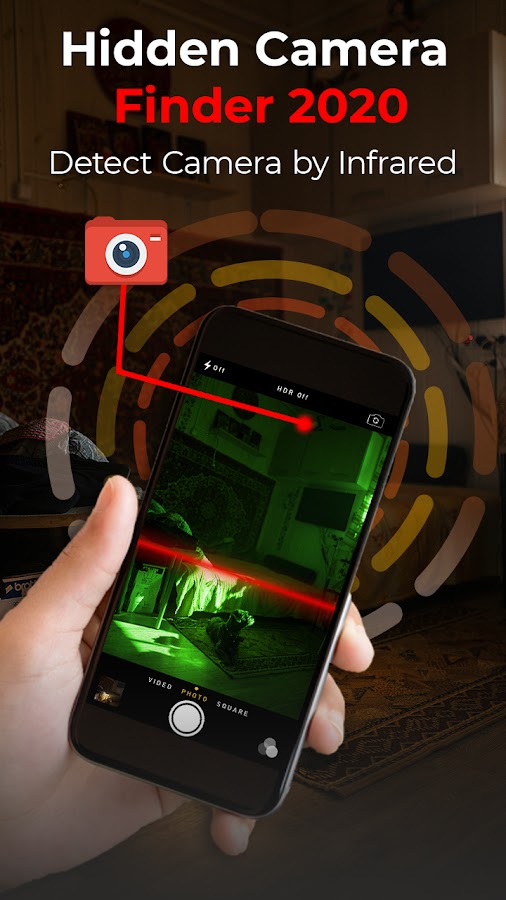 Шпионская камера-детектор скрытой камеры: если вы находитесь за городом и, к сожалению, остановились в отеле со своей семьей, поэтому ваша конфиденциальность является вашим 1-м приоритетом для этого обнаружения скрытой камеры, и приложение для обнаружения скрытой камеры-шпиона может обнаружить с помощью вашего смартфона сеньора и скрытой камеры приложение для поиска и камеры безопасности и приблизите его к любому устройству подвида, в котором у вас есть сомнения.