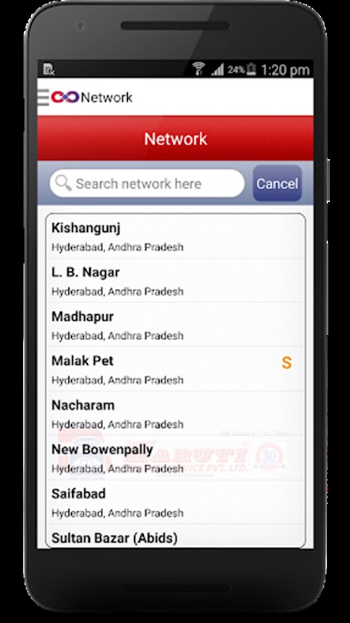 • Пользователь может искать в каждом центре Шри Марути. Появится форма списка для