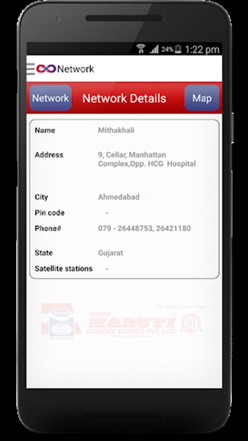 • Пользователь может просмотреть подробную информацию о любом центре курьерской сети Maruti.