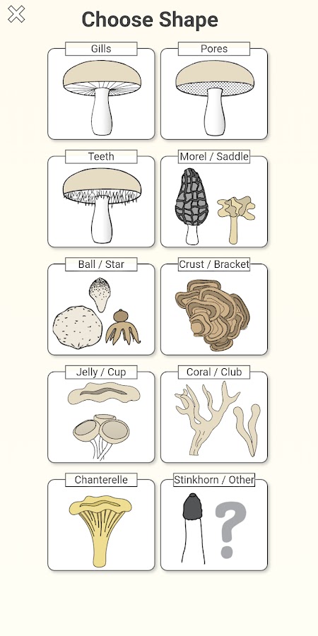 Идентифицировать гриб можно легко, выбрав характеристики грибов, которые вы бы хотели идентифицировать, и алгоритмы в приложении выявляют наиболее вероятные совпадения.