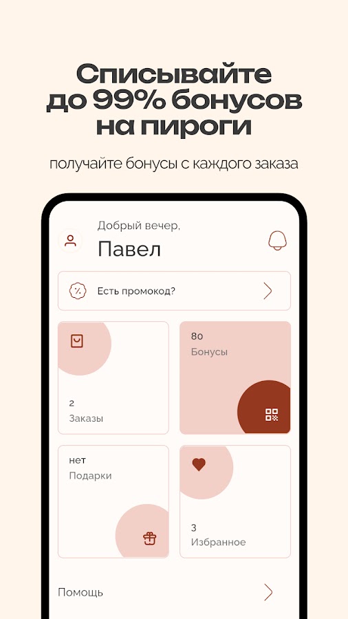 Получайте кешбэк 5% баллами на любой заказ, тратьте баллы, оплачивая до 99% следующего заказа. Только в приложении эксклюзивные скидки и предложения.