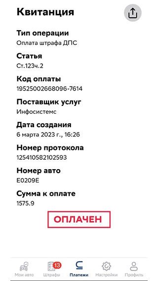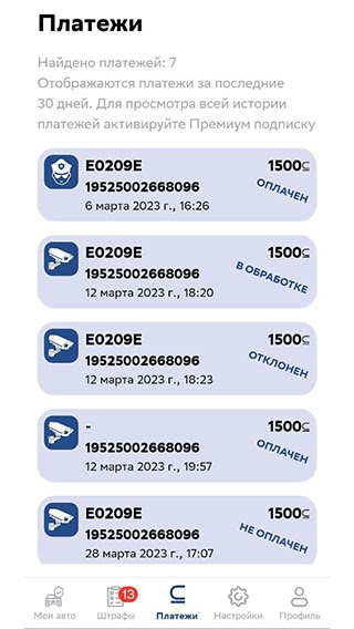 • Список оплаченных и неоплаченных штрафов, который всегда доступен в приложении