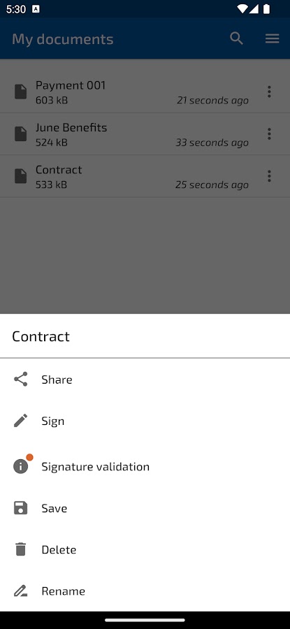 Сохраняйте подписанные документы на своем устройстве или мгновенно делитесь ими