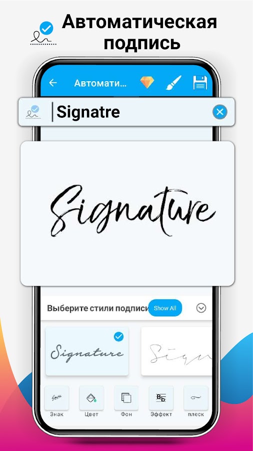 ✒ Автоподпись — лучшая функция этого приложения Digital Signature Maker and Signature Creator. Вы можете создать свою цифровую подпись, просто введя свое имя в текстовое поле. Это приложение имеет множество фирменных стилей. Для электронной подписи необходимо выбрать стиль шрифта в соответствии с вашими требованиями.