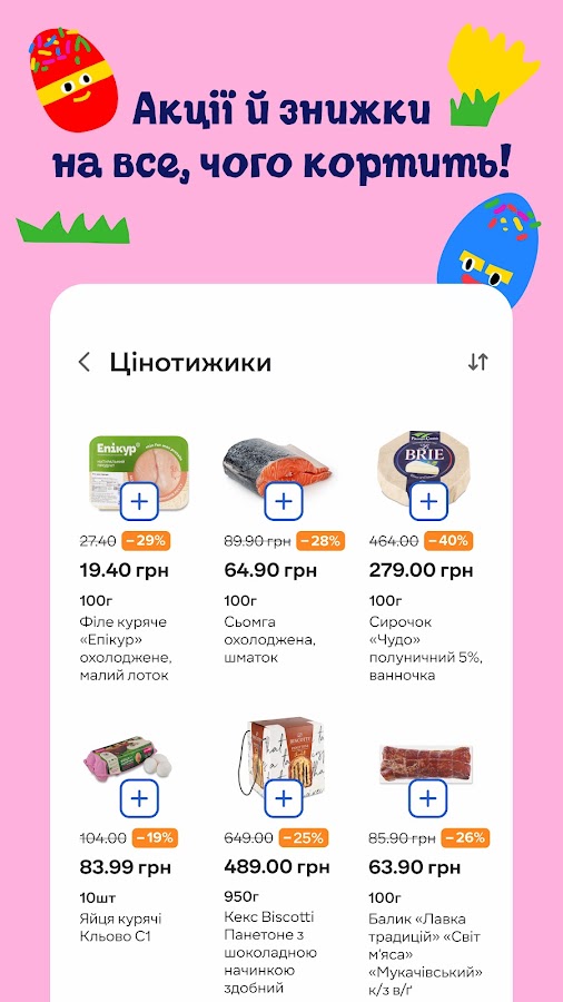Завантажуйте мобільний застосунок, де на вас чекає замовлення їжі та онлайн доставка товарів з «Сільпо» і LOKO. Формуйте список покупок, обирайте магазин продуктів поруч і отримуйте вигоду від щоденних покупок.