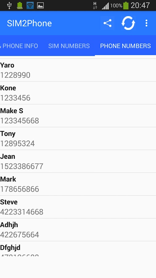 Бесплатное приложение позволяет отображать основную информацию на SIM-карте и устройства телефона и более операций на контакты SIM-карты и телефона: