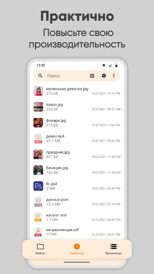 Менеджер файлов также может освободить место и экономить внутреннее пространство, сжимая файлы и папки. Этот современный органайзер медиафайлов поддерживает быстрый просмотр корневых файлов, карт памяти SD и USB-устройств. Менеджер файлов также распознает множество форматов файлов, включая музыку, видео, изображения и документы.