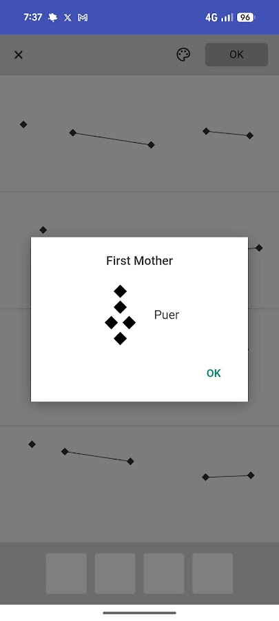 -Нажмите на экран, чтобы генерировать символы геомантии.