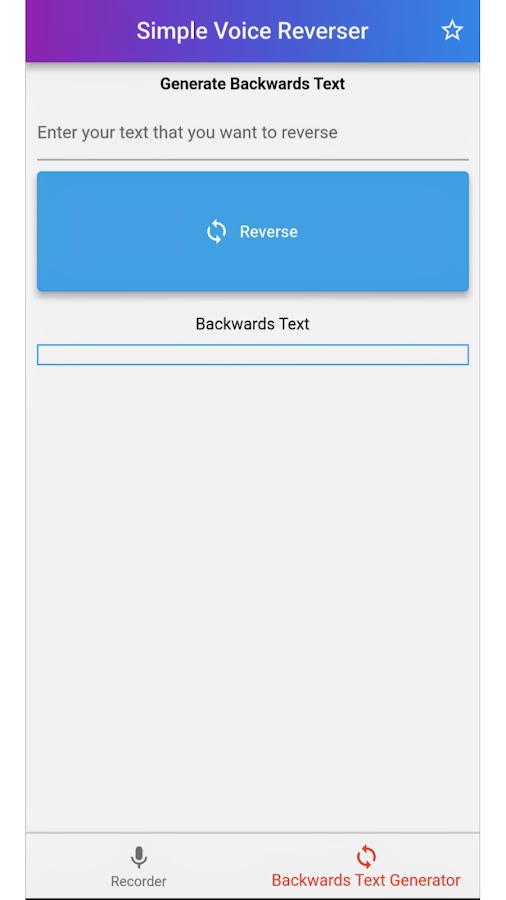 Скачайте приложение Simple Voice Reverser для Android бесплатно - последняя версия (1.0.1) уже доступна для установки на ваш телефон или планшет.