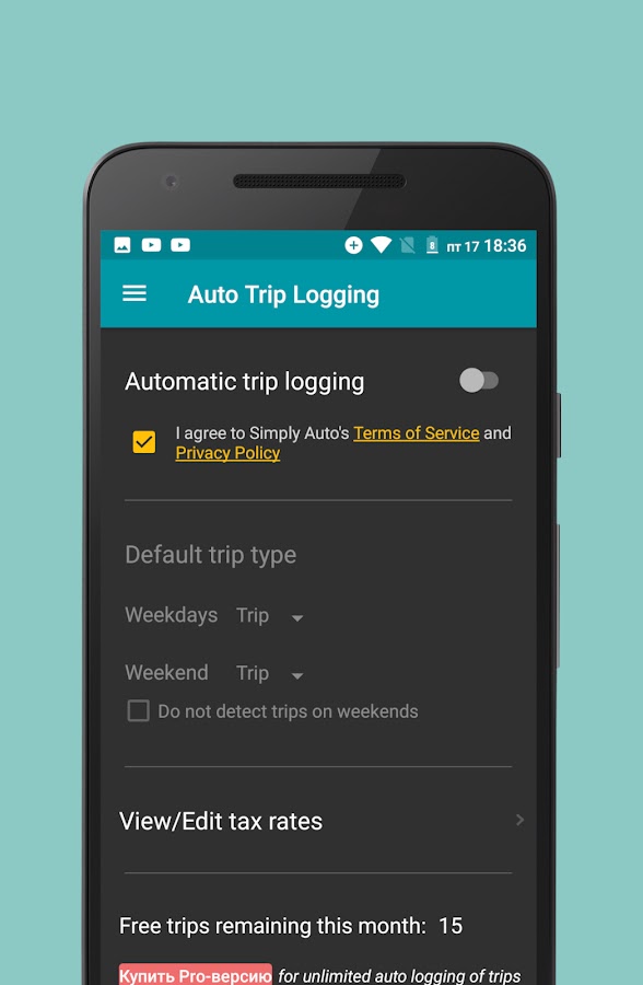 — Устанавливайте налоговый тариф для разных типов поездок.