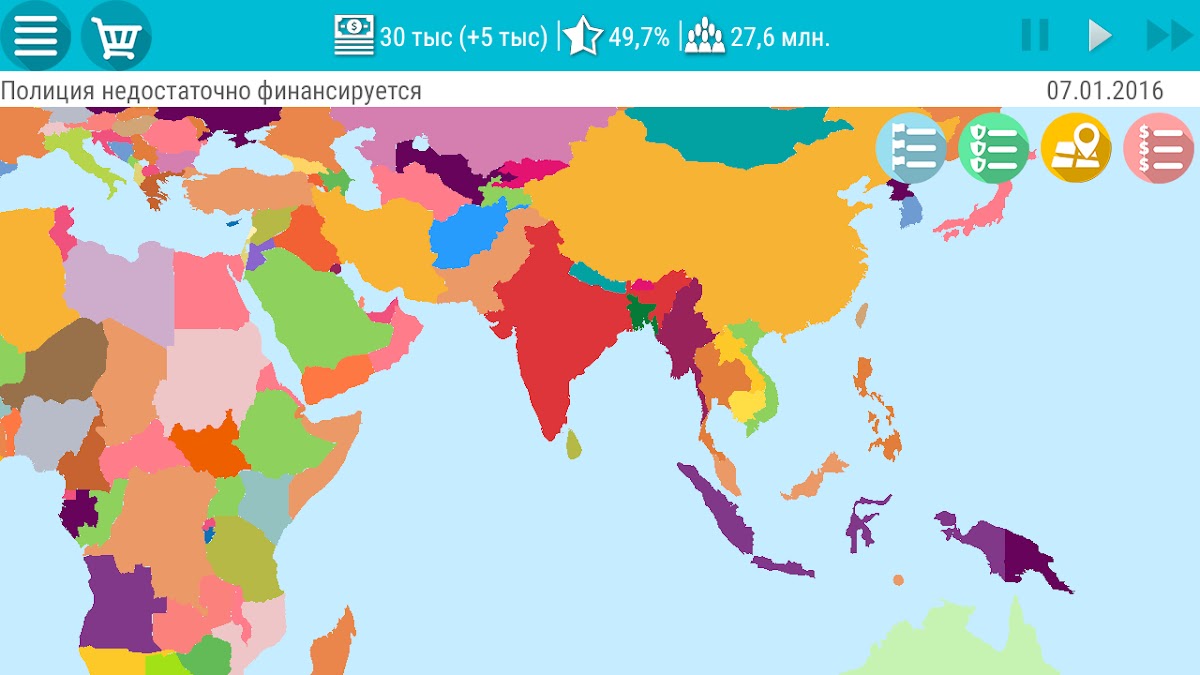 Уверены? Докажите! В стратегии «Симулятор Президента Lite» вы можете управлять одним из 163 современных государств. Политика, СМИ, шпионаж, природные катастрофы, войны, налоги, борьба с преступностью… Проявите силу, мудрость и настойчивость. Вознеситесь на уровень Супердержавы, диктующей свои правила, или мир размажет ваше государство по карте. Стратегия, которую вы выберите, определит место вашего государства.