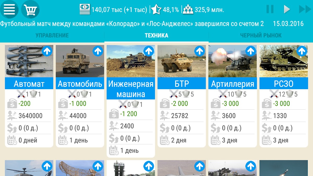 — Проведении учений армии государства (Вам доступо более 10 видов техники).