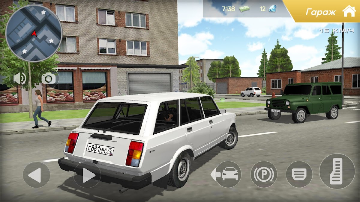 Симулятор жигулей — машины ВАЗ 2104 в провинциальном русском городке «Лесной». В этой игре ты можешь ездить на машине или ходить пешком в большом городе с пешеходным и автомобильным трафиком и с домами, в которые можно заходить. Собирай деньги на улицах и в переулках для улучшения твоего Жигули Четверка. Находи редкие кристалы, спрятанные чемоданы и элементы тюнинга.