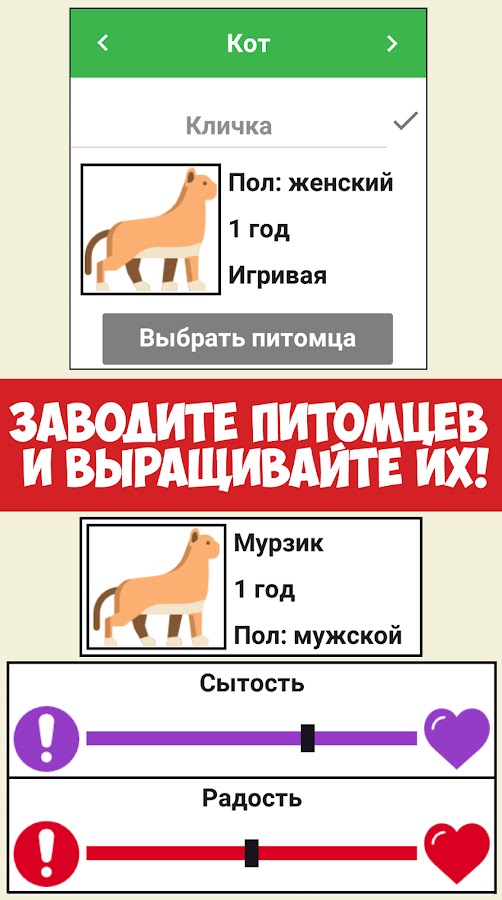 — ВЫРАЩИВАЙТЕ и заботьтесь о своих домашних питомцах. Имеется множество домашних питомцев, начиная от котов и заканчивая черепашками. Ваши питомцы постоянно растут, поэтому не забудьте за ними ухаживать и кормить!