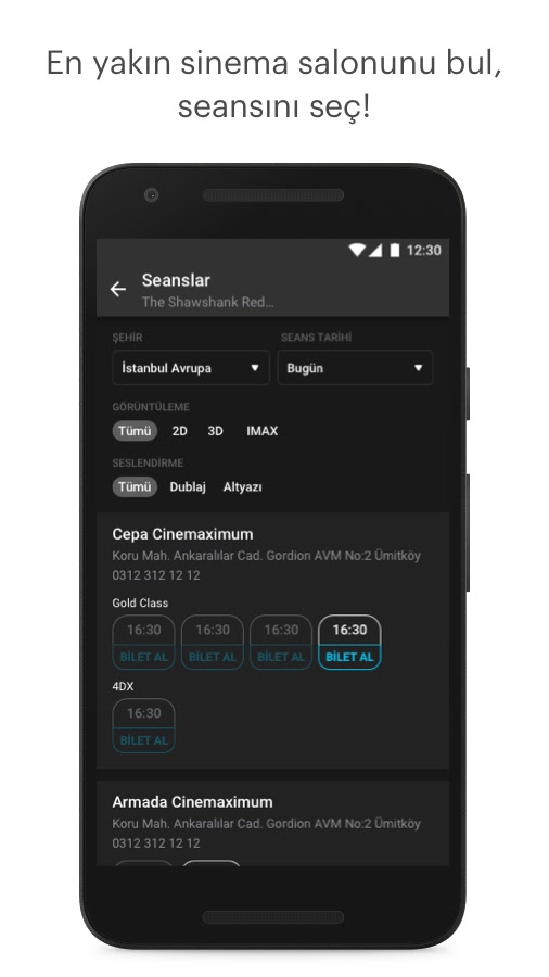 Sinemalar.com uygulamasını kullanarak: