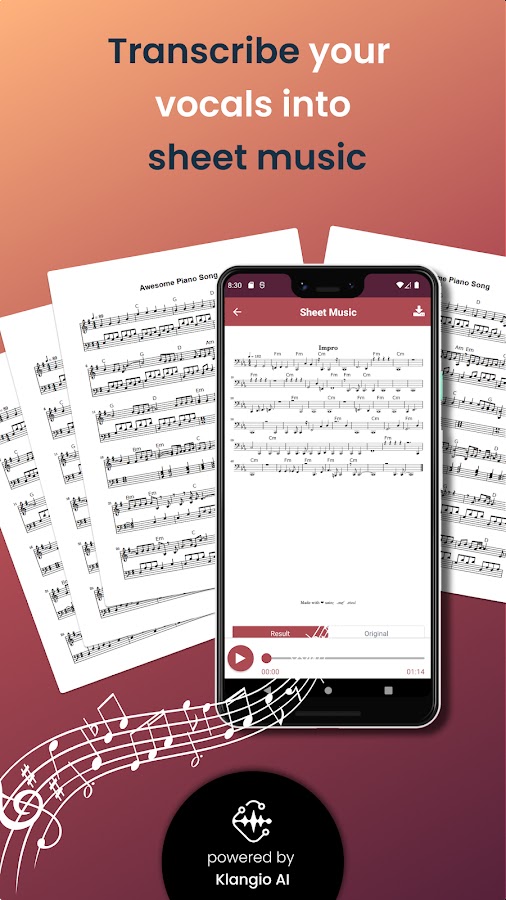 Скачайте приложение Sing2Notes — Sheet from Vocals для Android бесплатно - последняя версия (1.6.2) уже доступна для установки на ваш телефон или планшет.