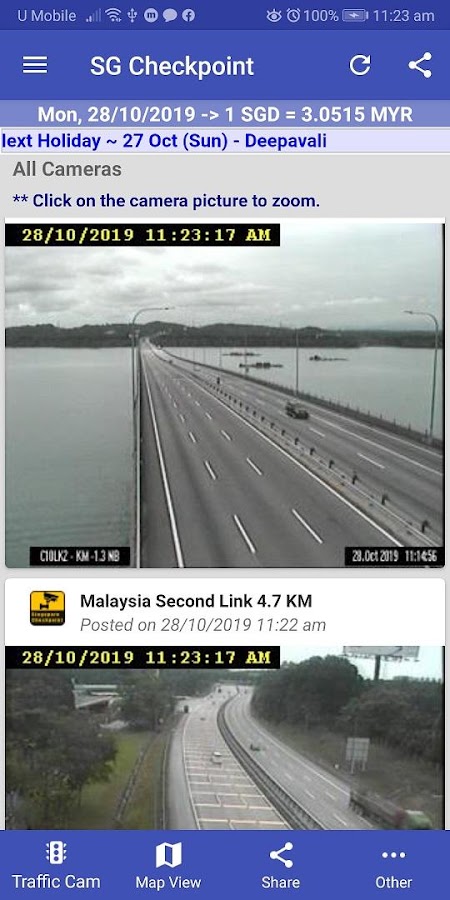 Веб-камеры в реальном времени: просматривайте изображения с веб-камер в реальном времени с основных контрольно-пропускных пунктов, включая Woodlands Causeway, Second Link в Туасе, контрольно-пропускной пункт Туас и других.