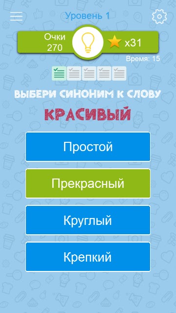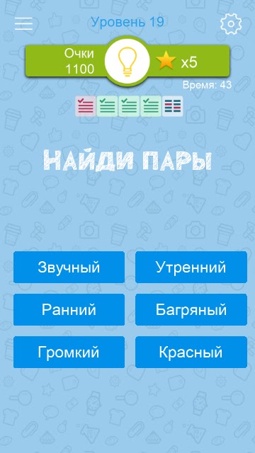 Будь вы школьником, студентом или взрослым дяденькой, «Синонимы» помогут увеличить ваш словарный запас, повысить эрудицию и натренировать память. Если же вы — профи в знании русского языка, проверьте себя — сколько уровней сможете пройти без подсказок?