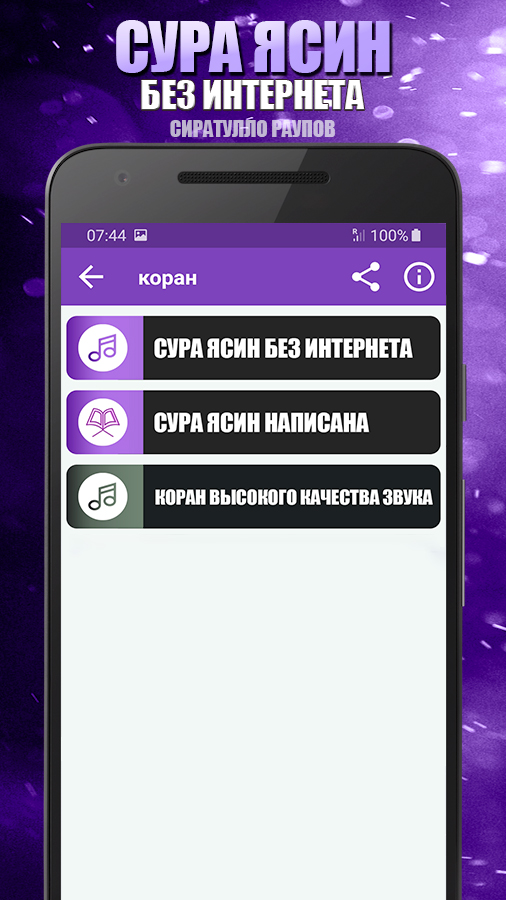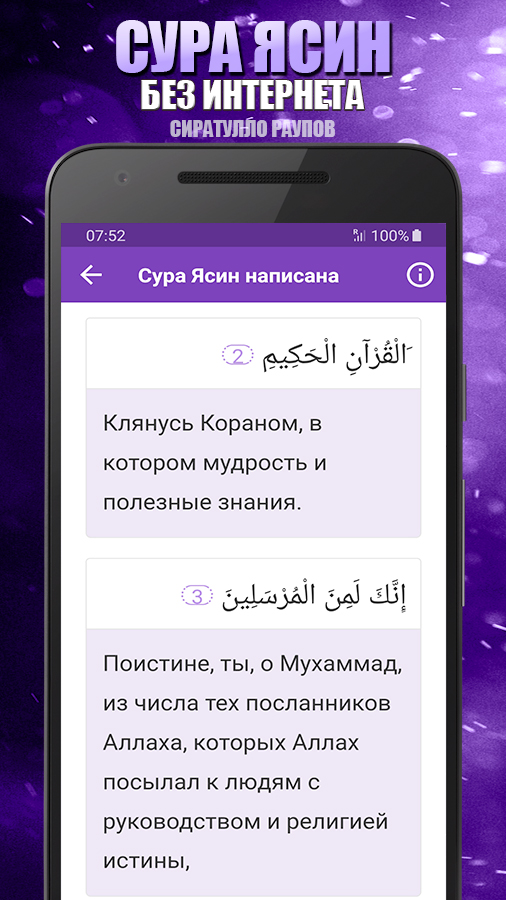 Замечательное приложение для суры Ясин из Священного Корана с голосом чтеца Сиратулло Раупов без интернета