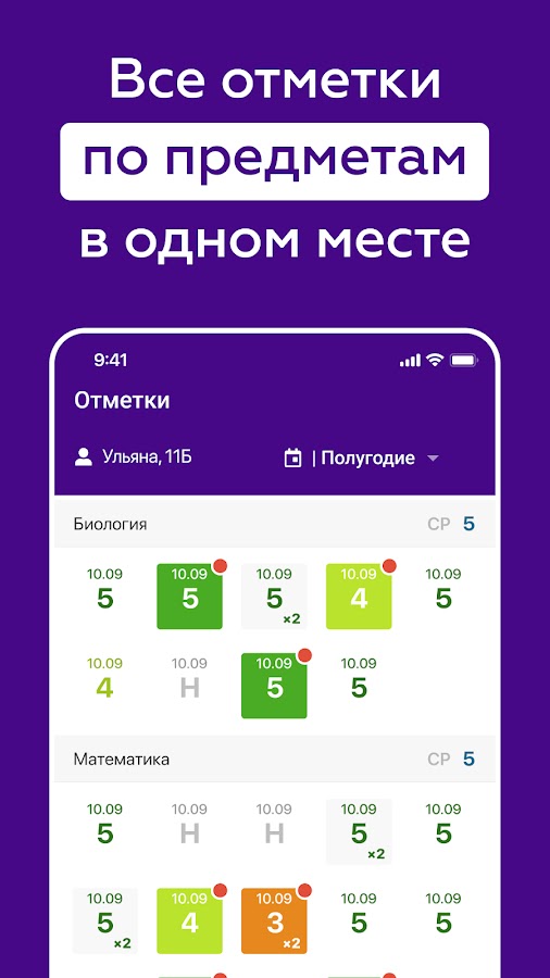 Приложение позволяет родителям и ученикам иметь легкий и быстрый доступ к школьным дневникам, в том числе к информации об успеваемости, выданным домашним заданиям, пропущенным урокам, комментариям преподавателей к отметкам, а также расписанию уроков с указанием кабинета и преподавателя.