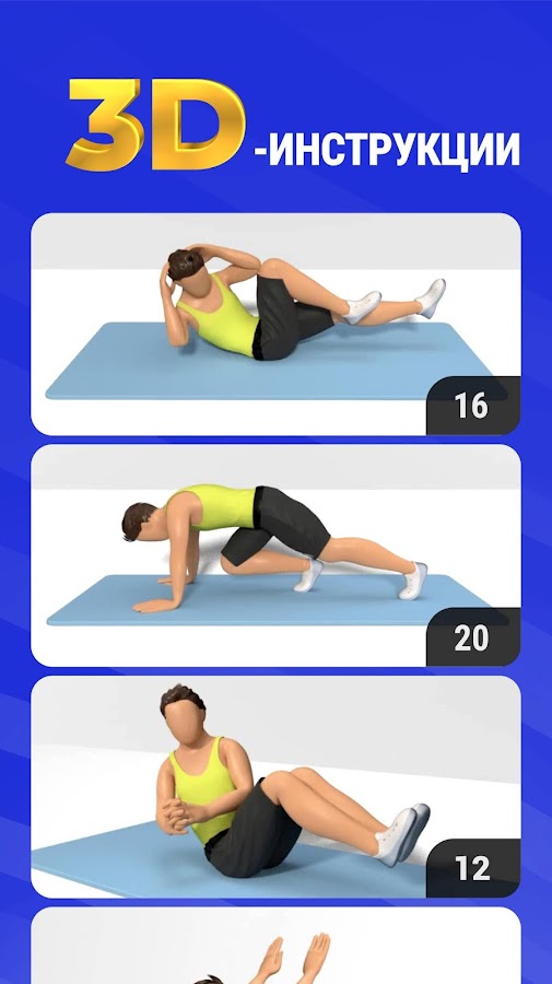3D-АНИМАЦИИ и видео помогут правильно выполнять упражнения. По ходу каждой тренировки вы будете получать СОВЕТЫ для лучших результатов.